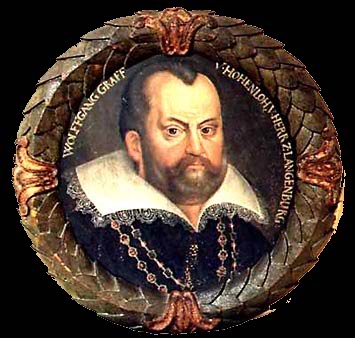 Zwager van Willem van Oranje door zijn huwelijk met diens zuster Magdalena. Tevens broer van Filip van Hohenlohe die dingt naar de hand van Mayke, dochter van dezelfde Oranje.